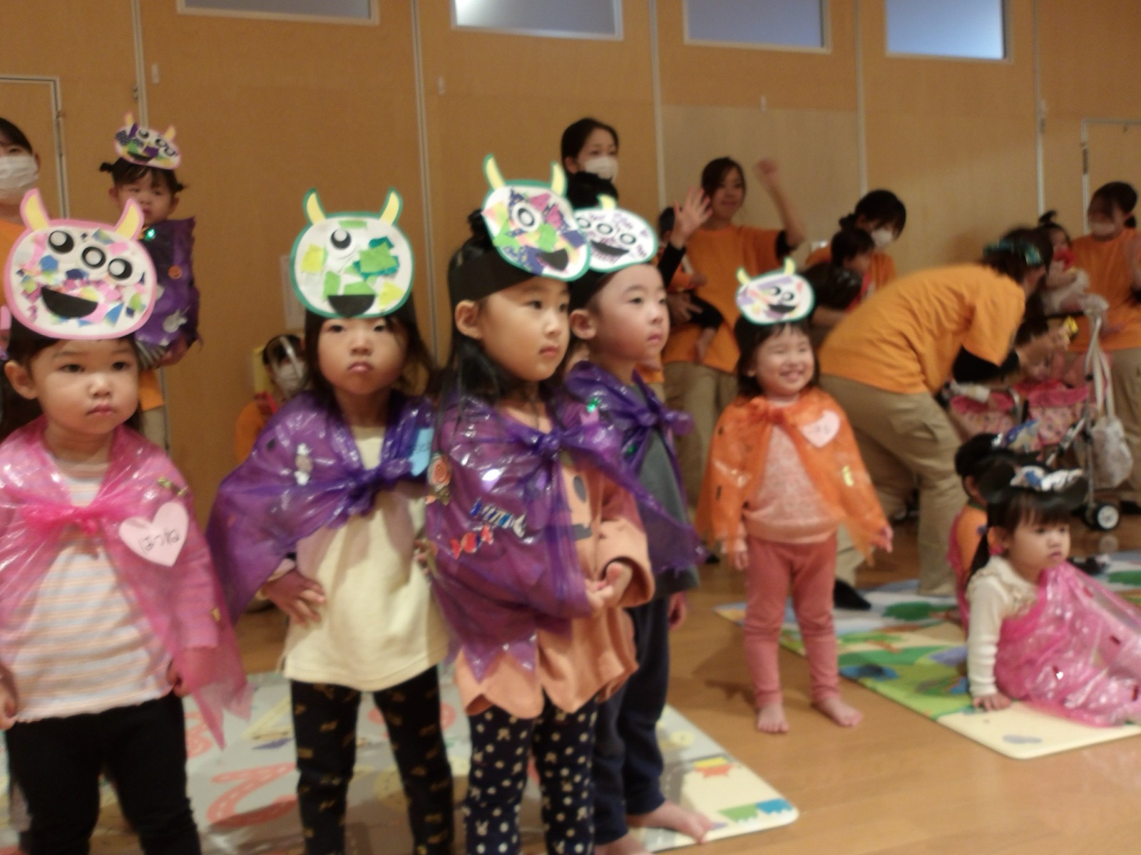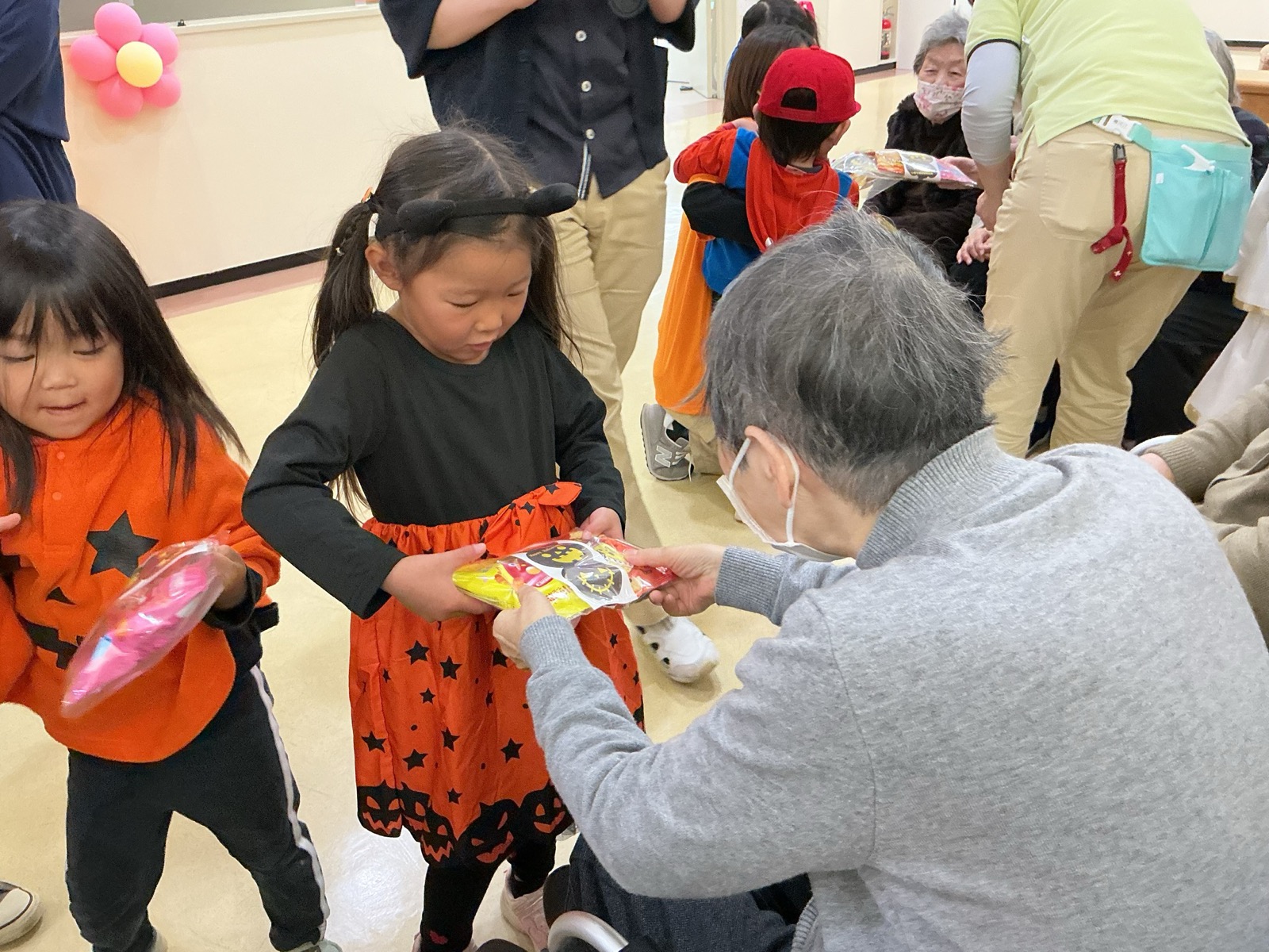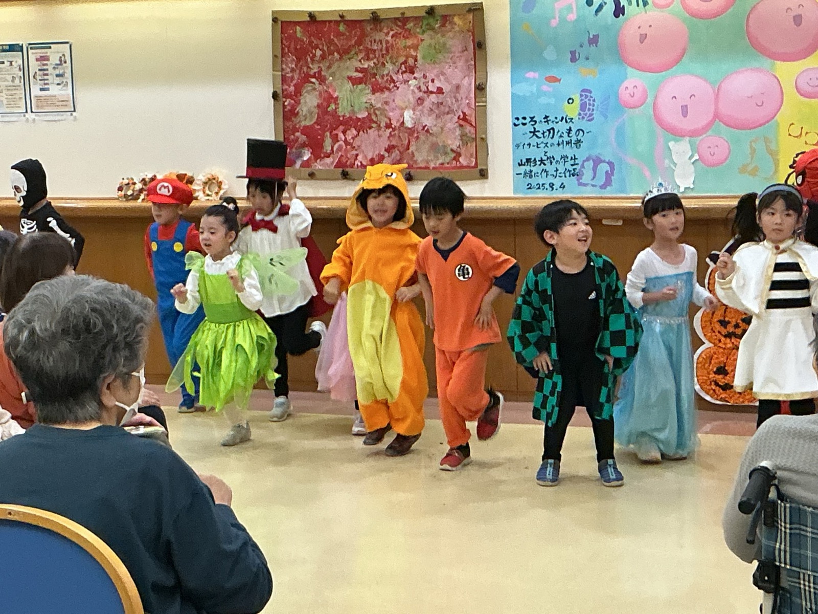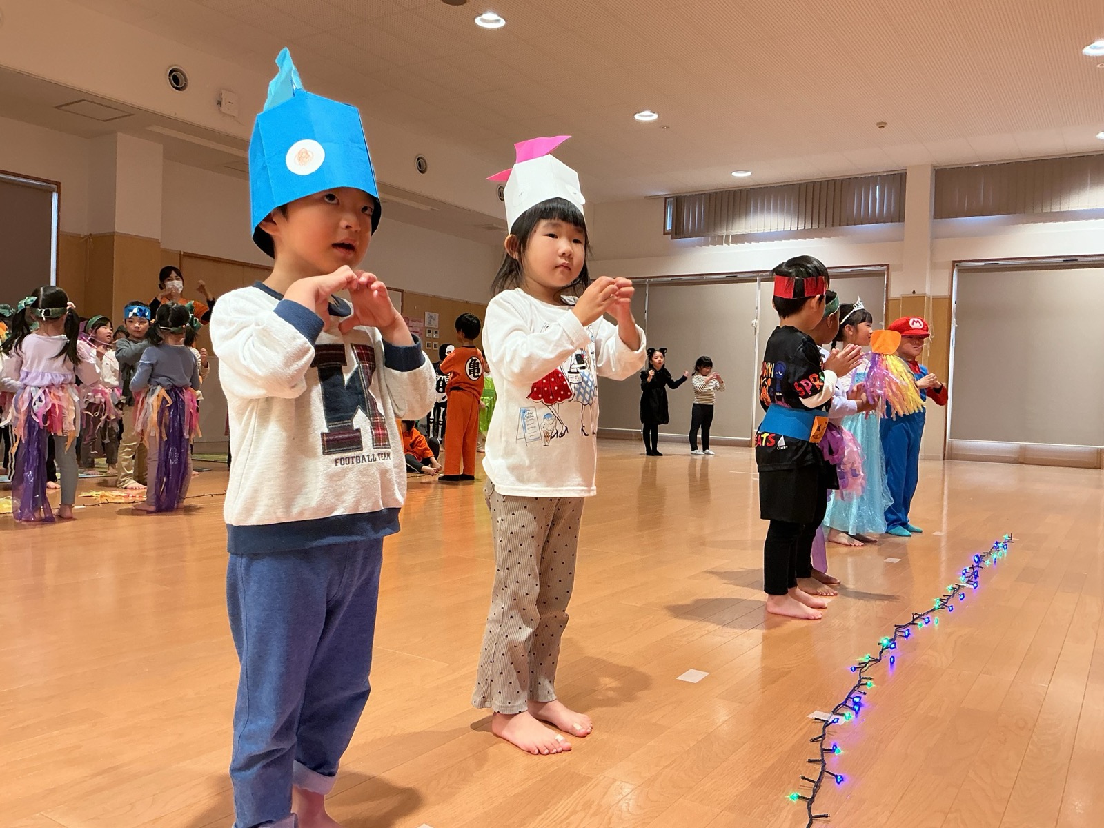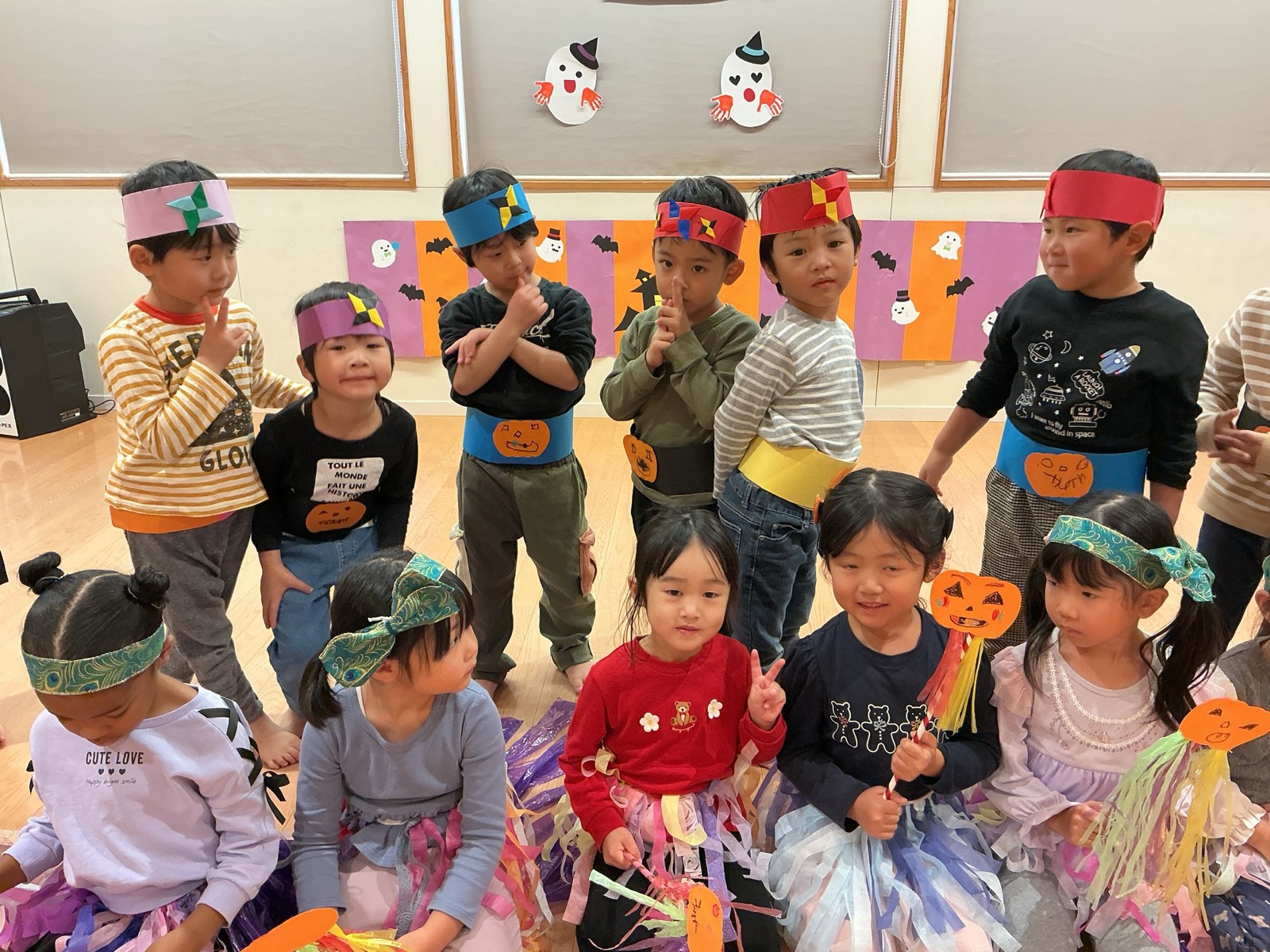 10月31日はハロウィン!全園児でファッションショー!その後はお遊戯室でゲームをして楽しみました。5歳児はやぶさは小白川ケアセンターのおじいちゃん・おばあちゃんに会いに出かけました。可愛いダンスを披露して、お菓子をいただいてきました!