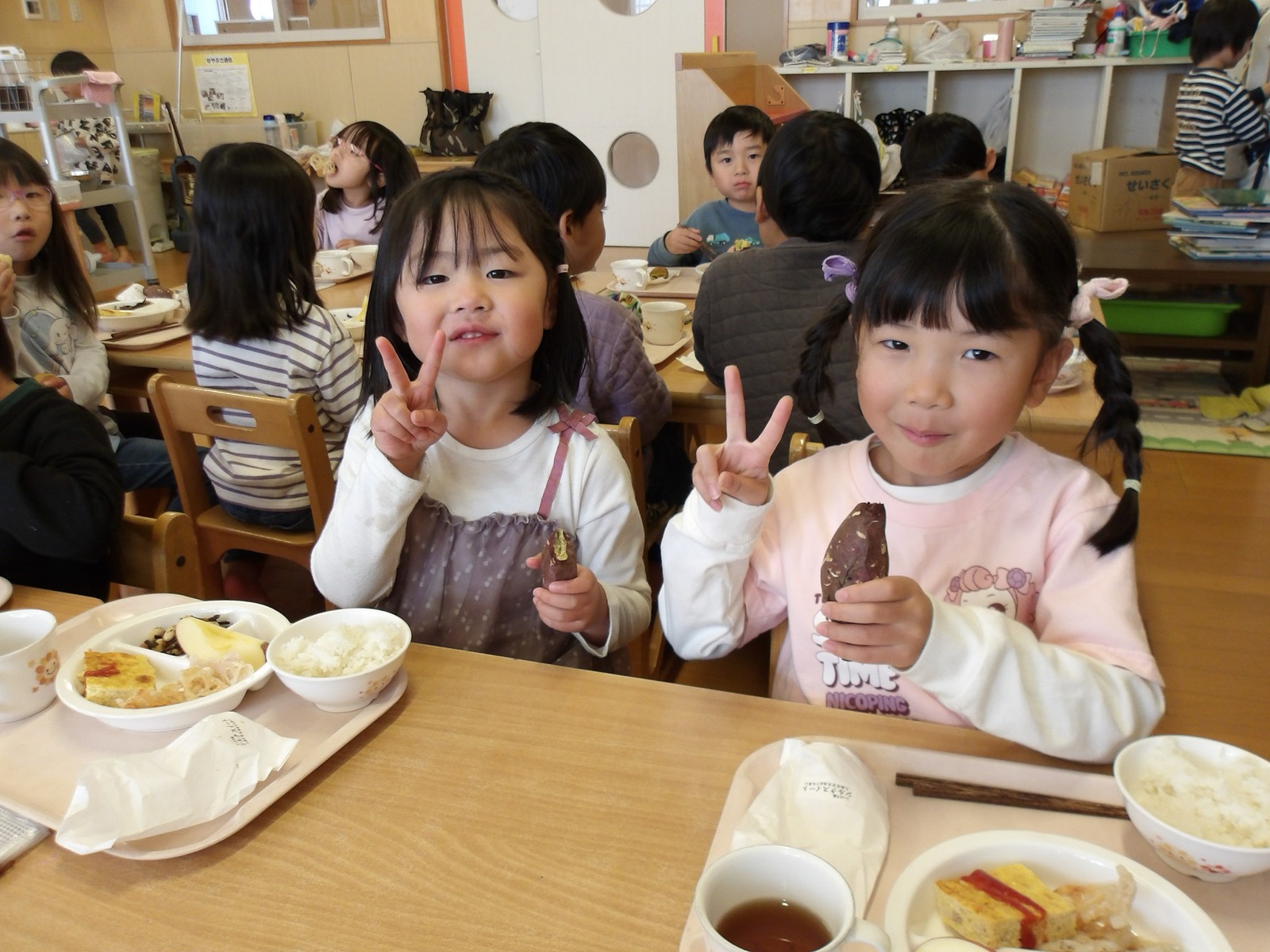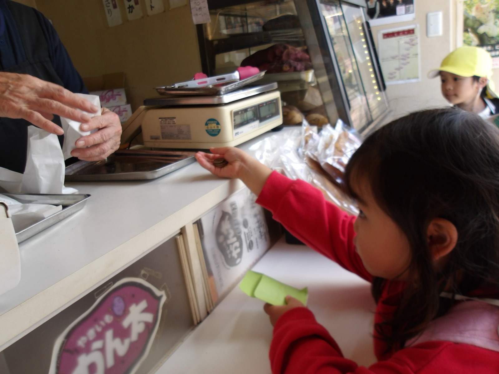 11月12日に4歳児ぺがさすが園外保育に出掛けました。毎年この時期に焼き芋をするので、お店の焼き芋を食べてみようということになり、一人ひとりがお金を持って焼き芋を買いに出掛け、どうやって焼いているのかも見学させてもらいました。園に帰って食べてみると…!とても甘くて、皮までぺろり!これから保育園での焼き芋も美味しできるか、みんなで話し合って作りたいと思います。やきいも かんたさん ありがとうございました!