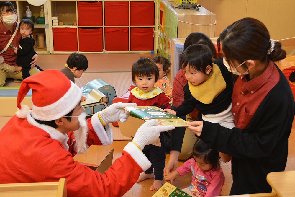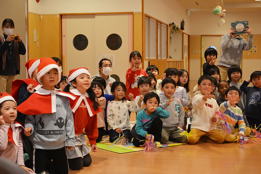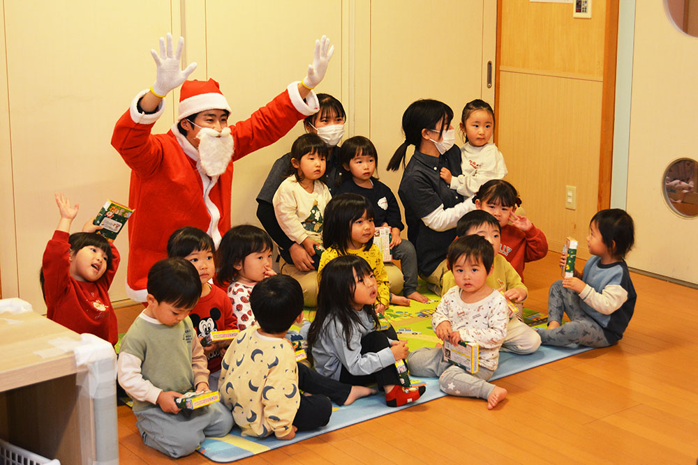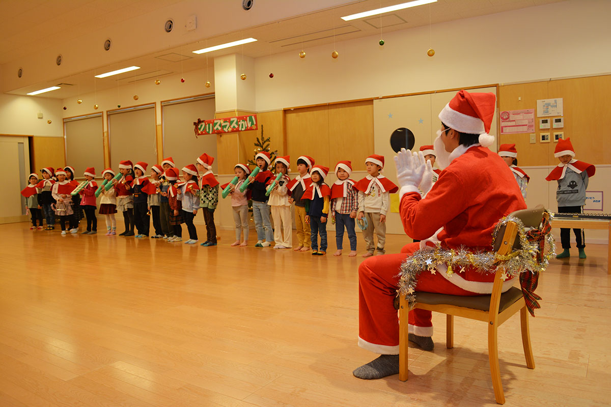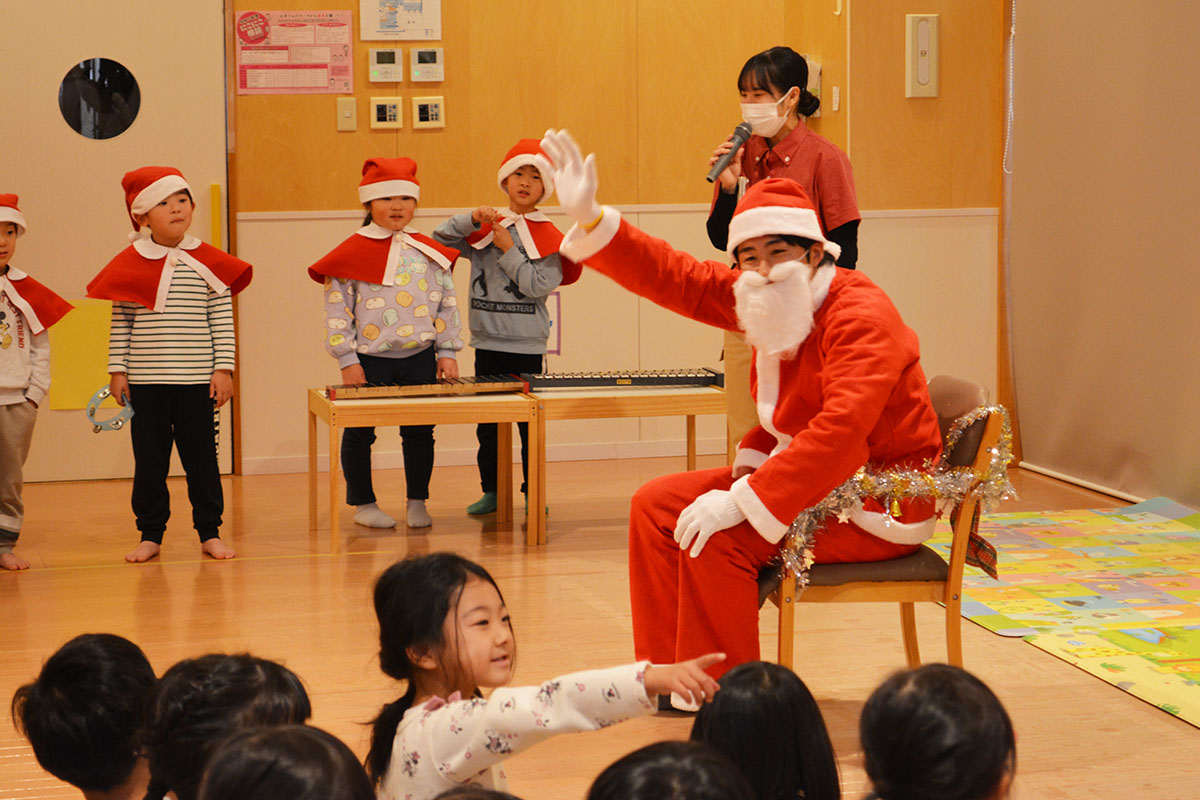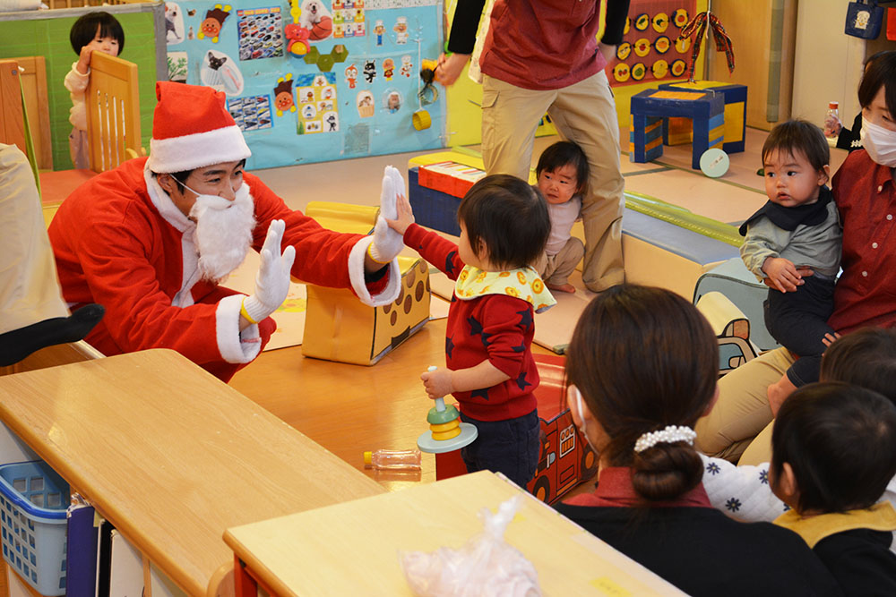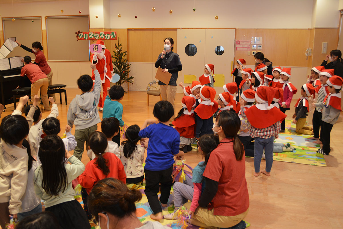 12月24日(水)、はやぶさ保育園でクリスマス会が行われました。歌やダンスを楽しんでいると・・・サンタさんが登場!!サンタさんとダンスを踊って、素敵なクリスマスプレゼントをもらうことができました!メリークリスマ〜ス!