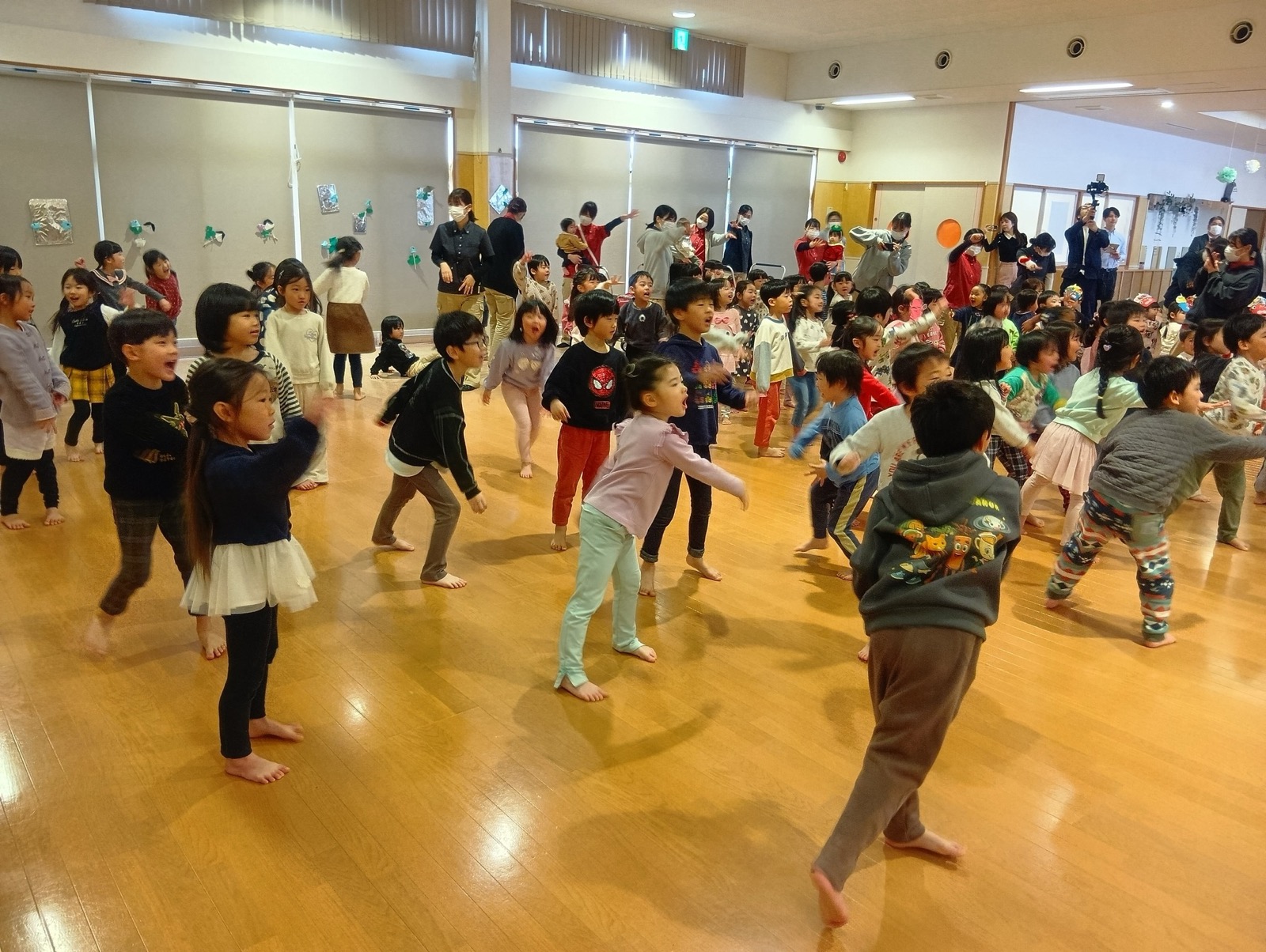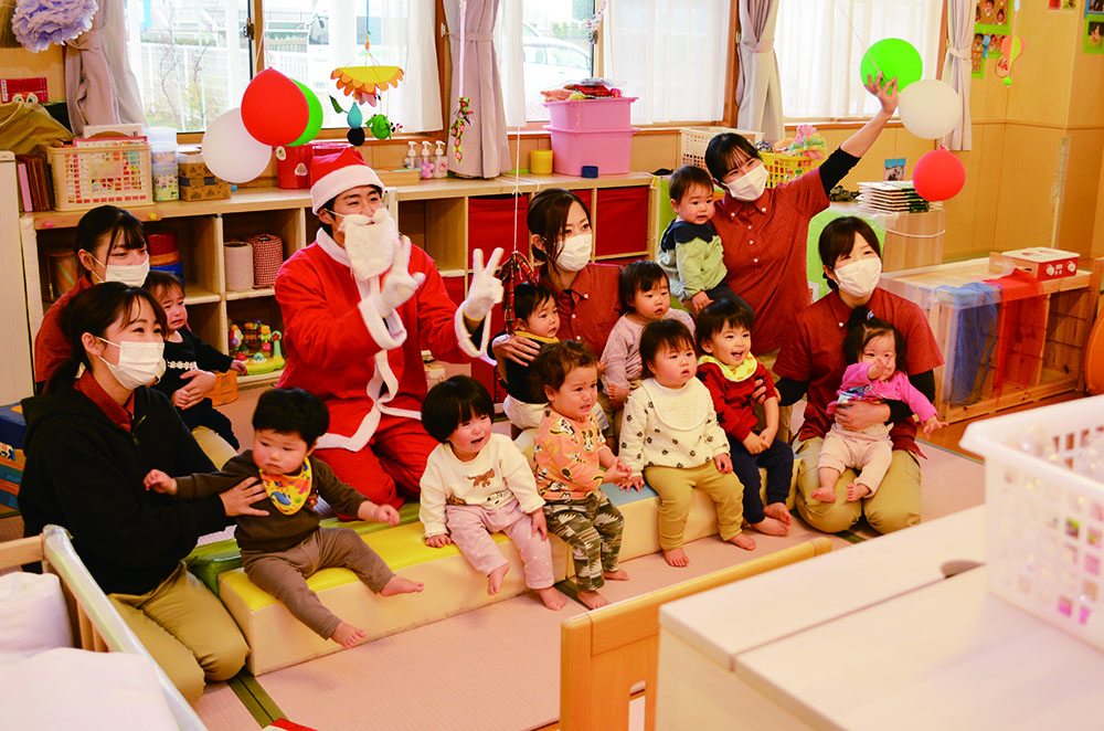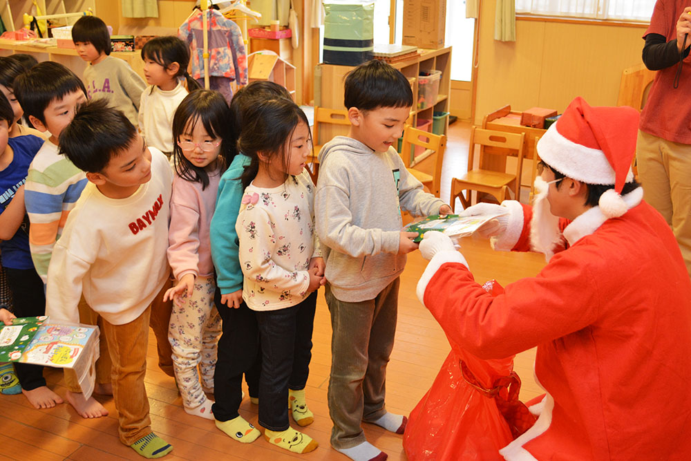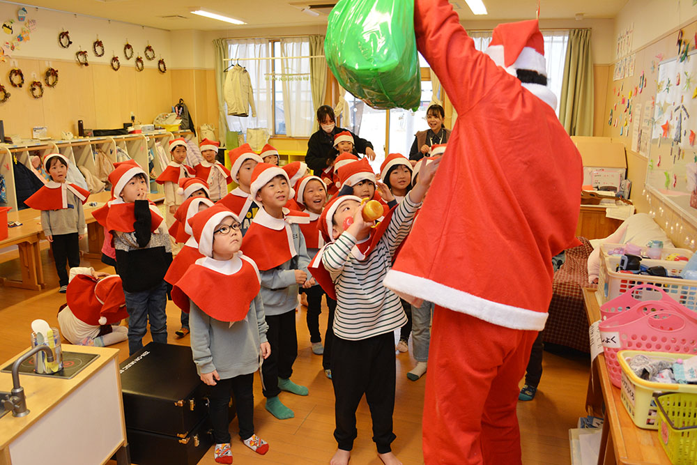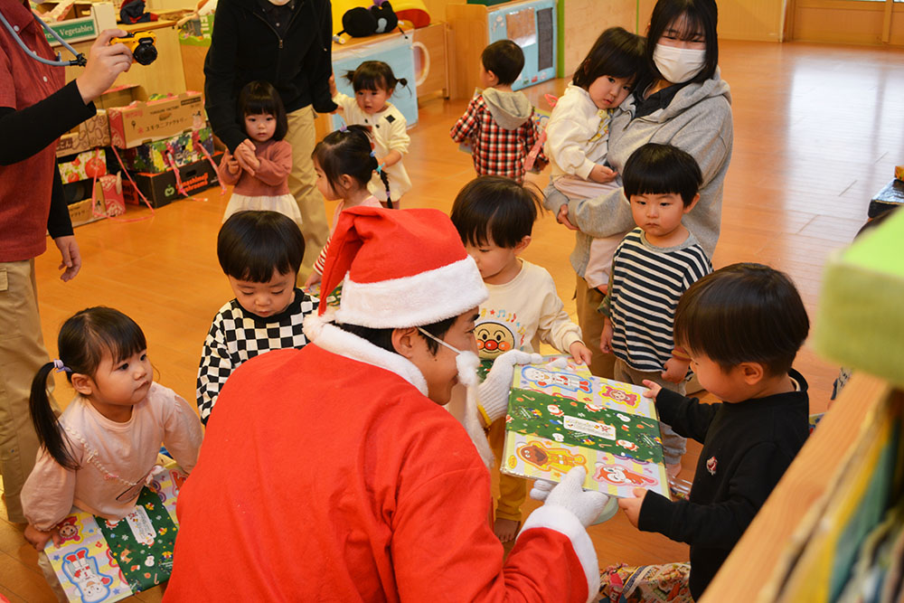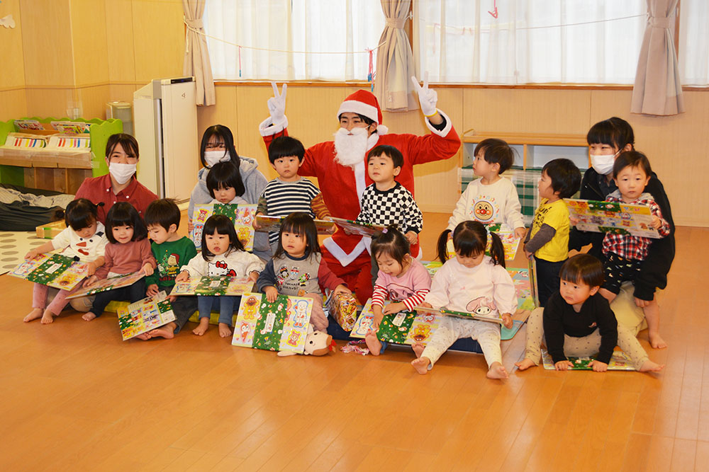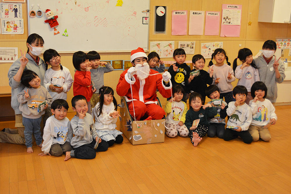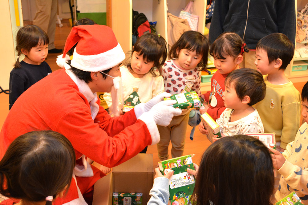 12月24日(水)、はやぶさ保育園でクリスマス会が行われました。歌やダンスを楽しんでいると・・・サンタさんが登場!!サンタさんとダンスを踊って、素敵なクリスマスプレゼントをもらうことができました!メリークリスマ〜ス!