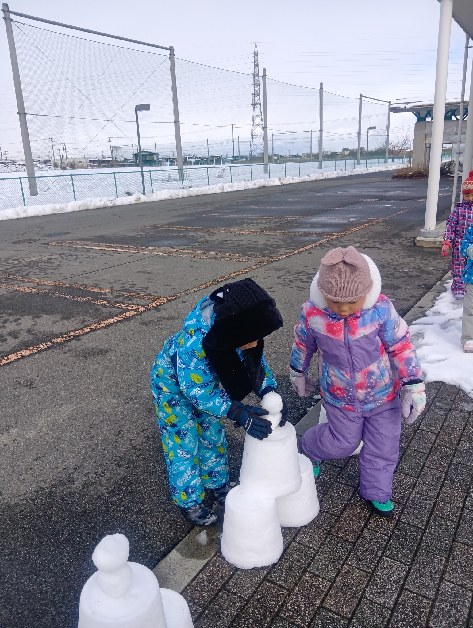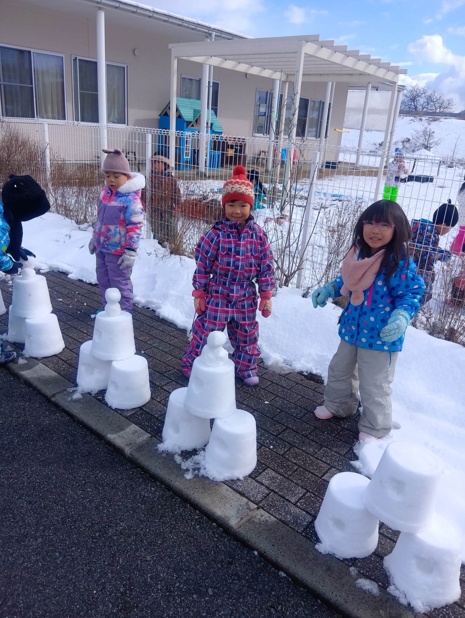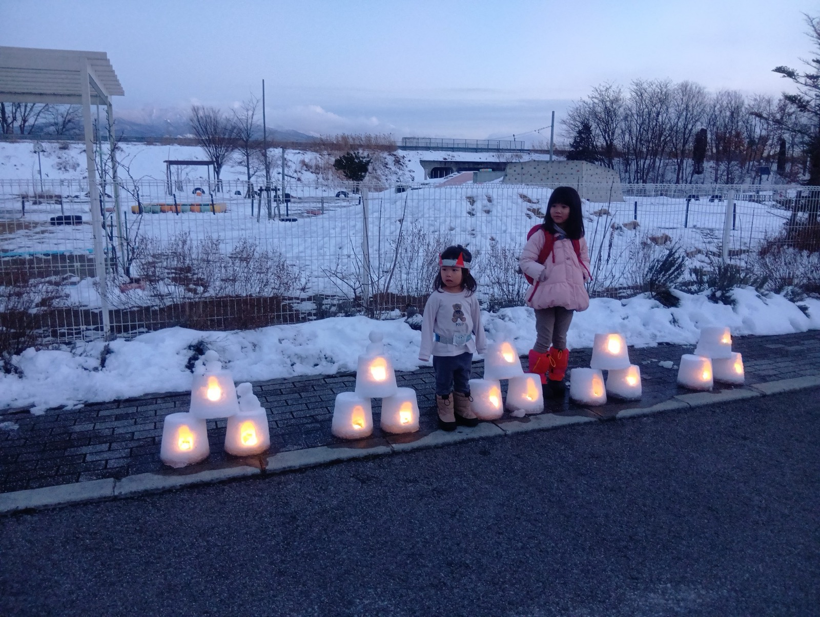 はやぶさ保育園に雪灯籠がお目見え!先生と子ども達で協力して作り上げました。夕方には灯りがともり、雪を通した光がふんわりと広がっていました。